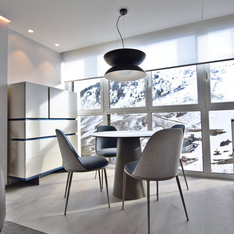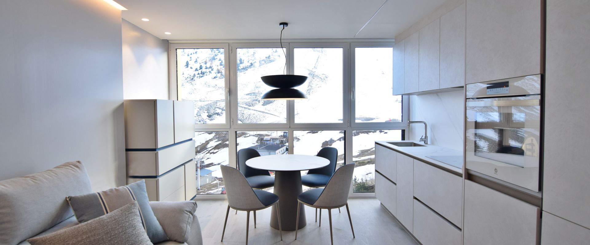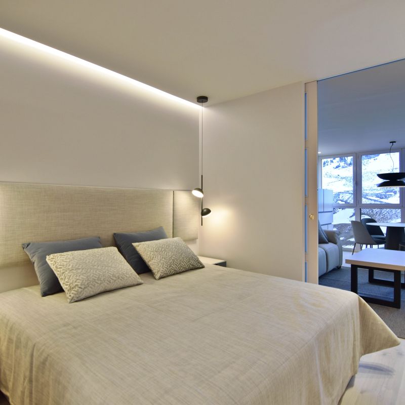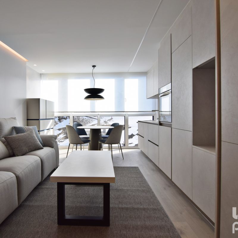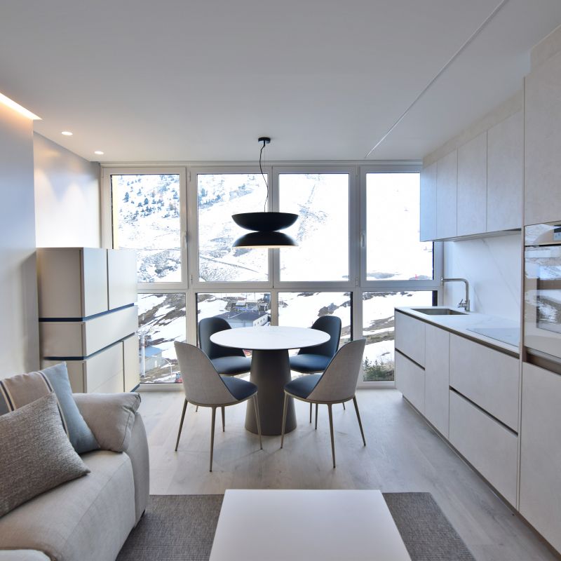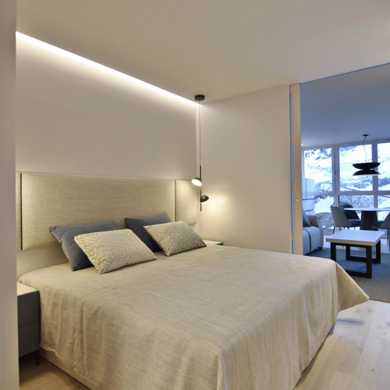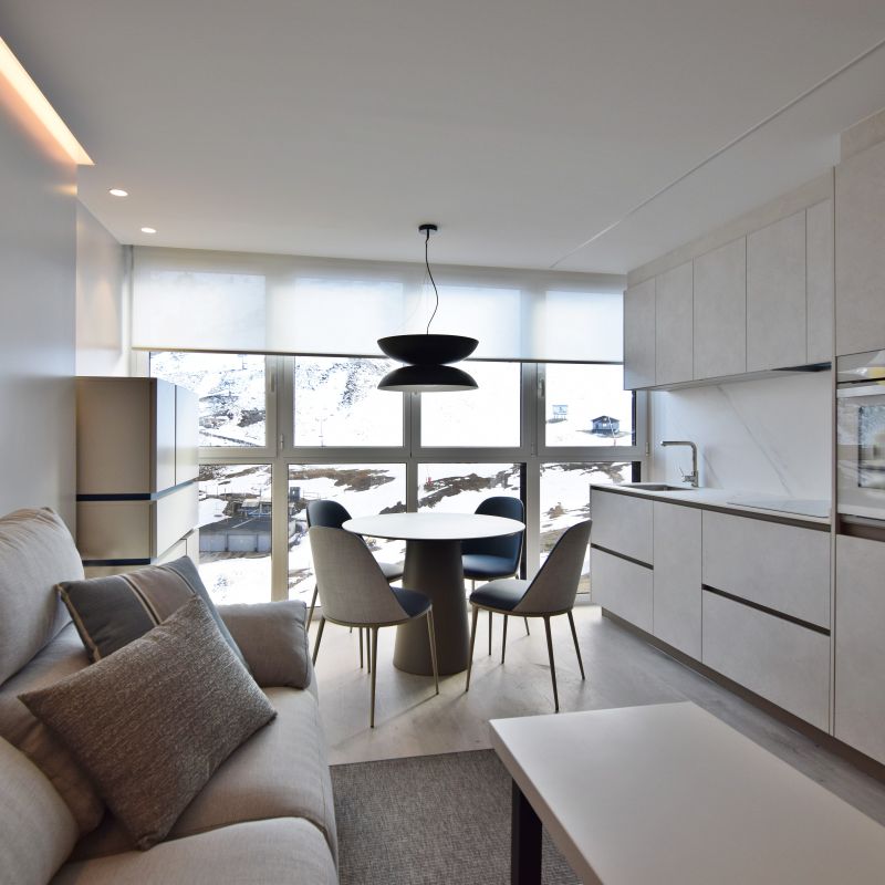 Este proyecto supone un reto superado al proyectar una vivienda en 35 metros cuadrados. Un apartamento ubicado a pie de pista en Candanchú, equipado con zona día, dos dormitorios y baño.
