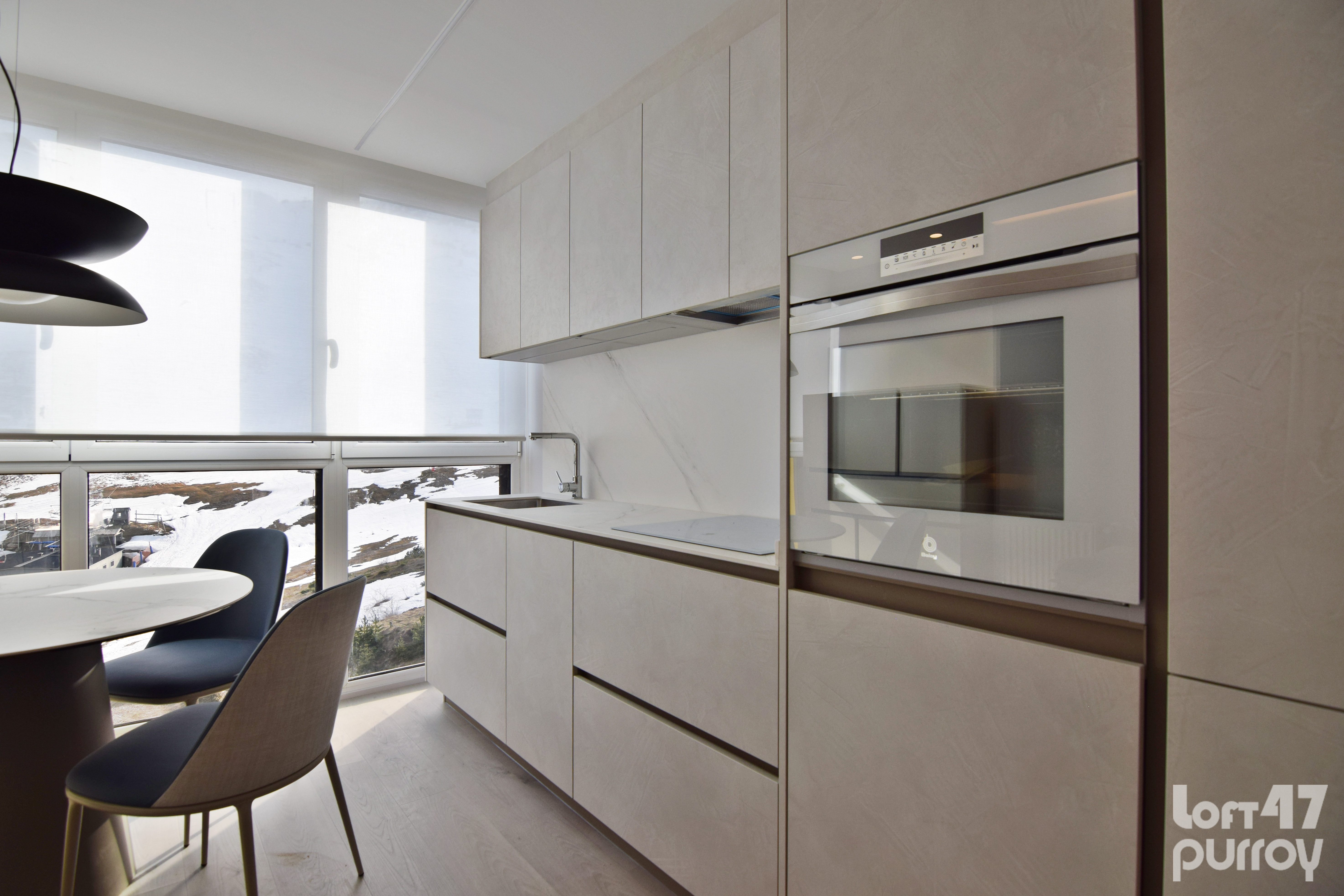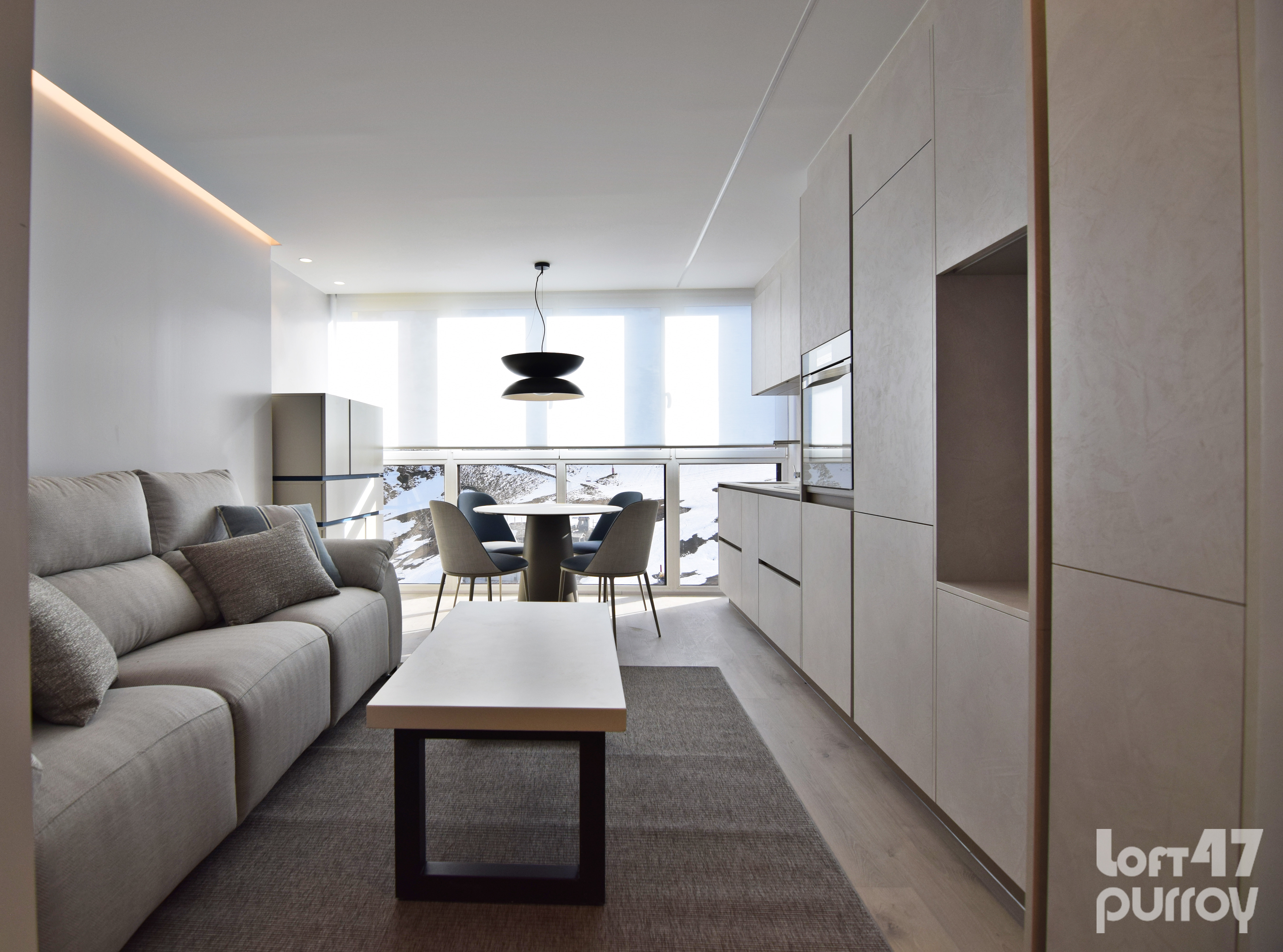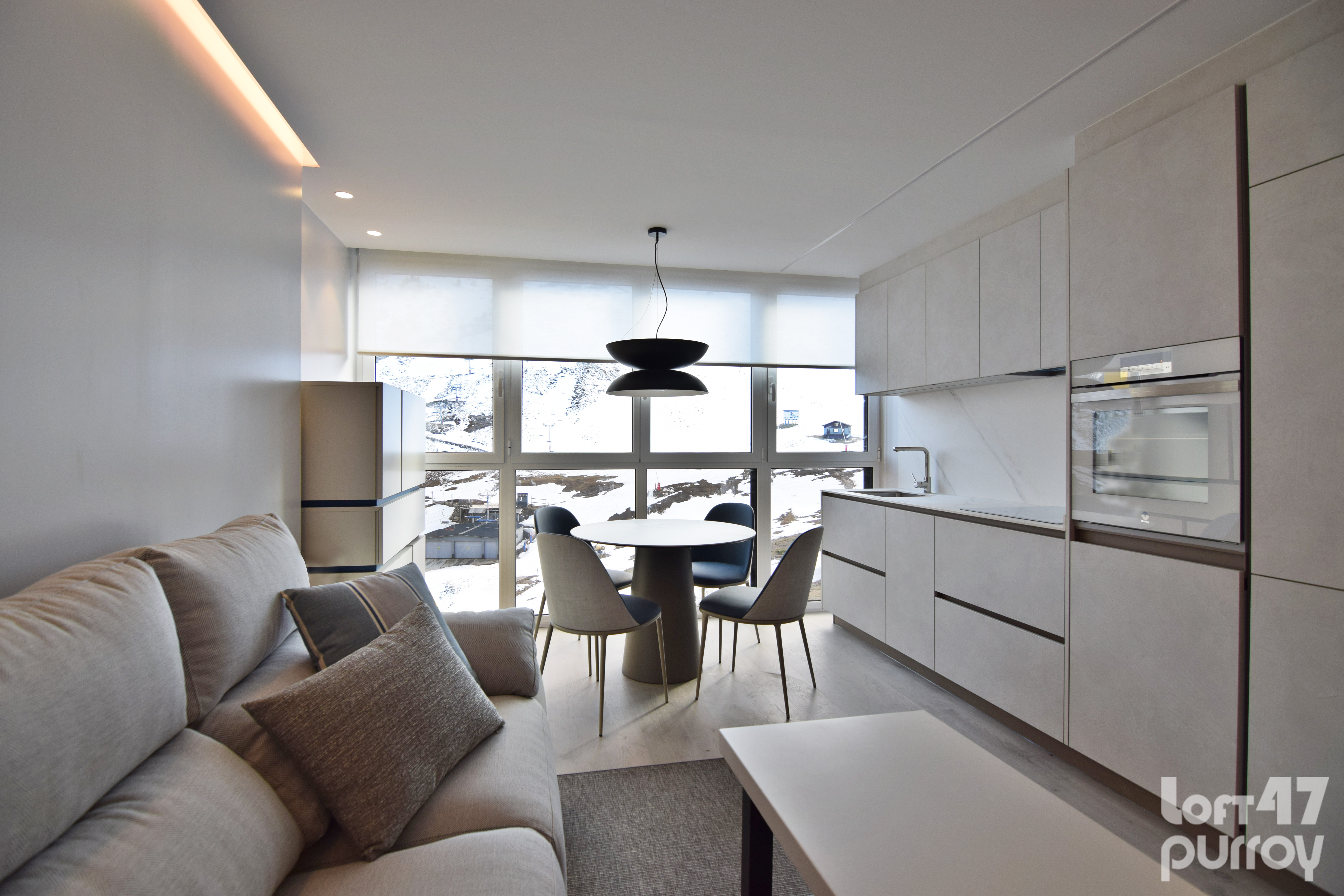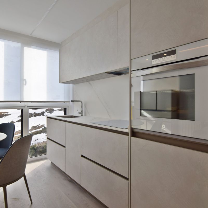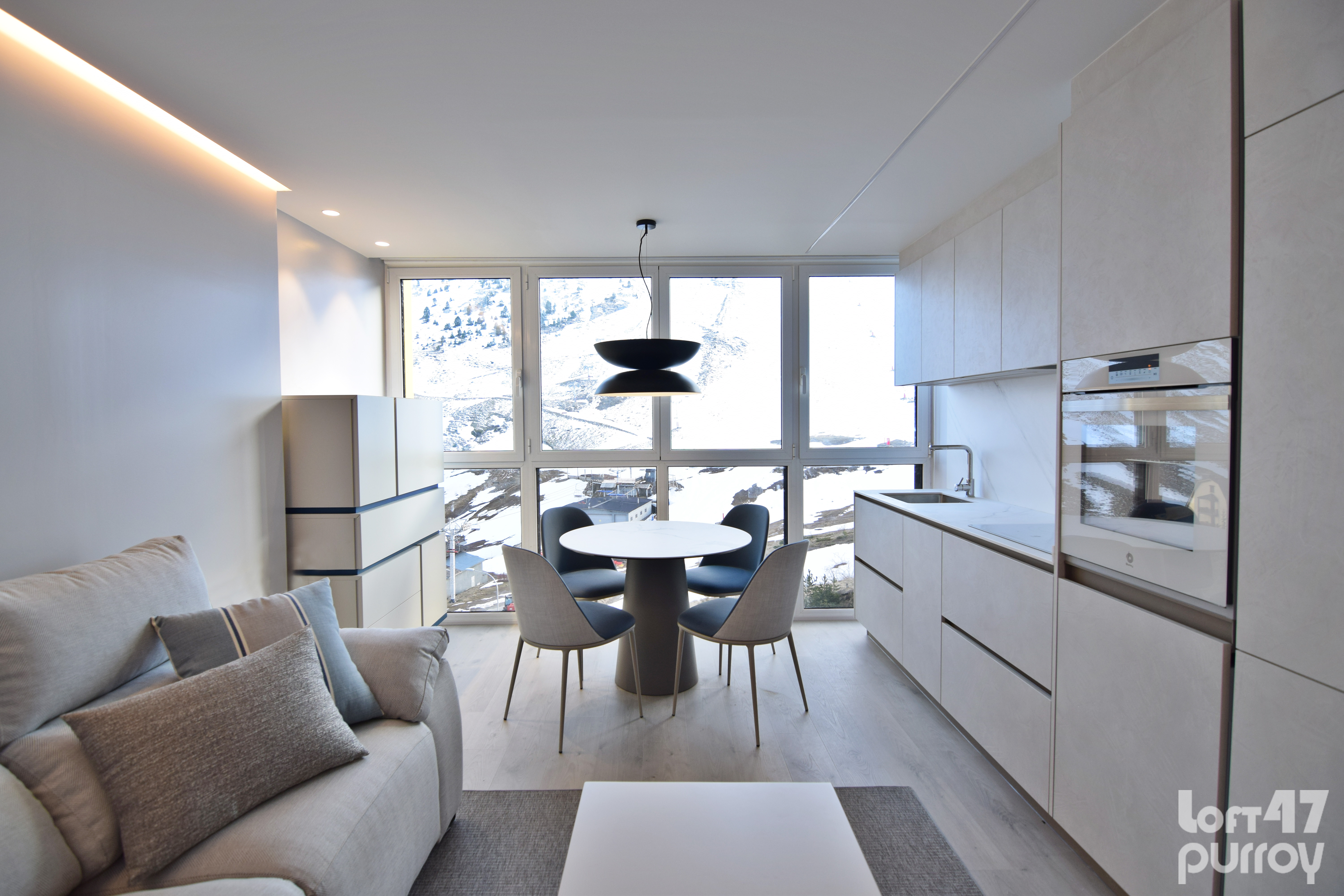 Este proyecto supone un reto superado al proyectar una vivienda en 35 metros cuadrados. Un apartamento ubicado a pie de pista en Candanchú, equipado con zona día, dos dormitorios y baño.