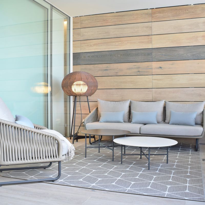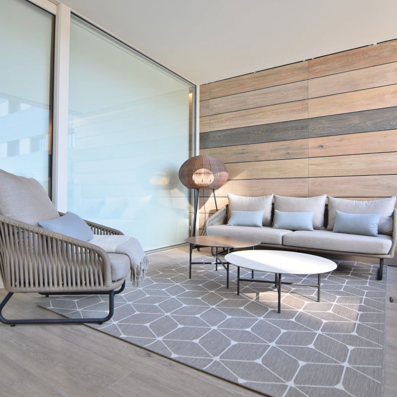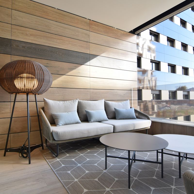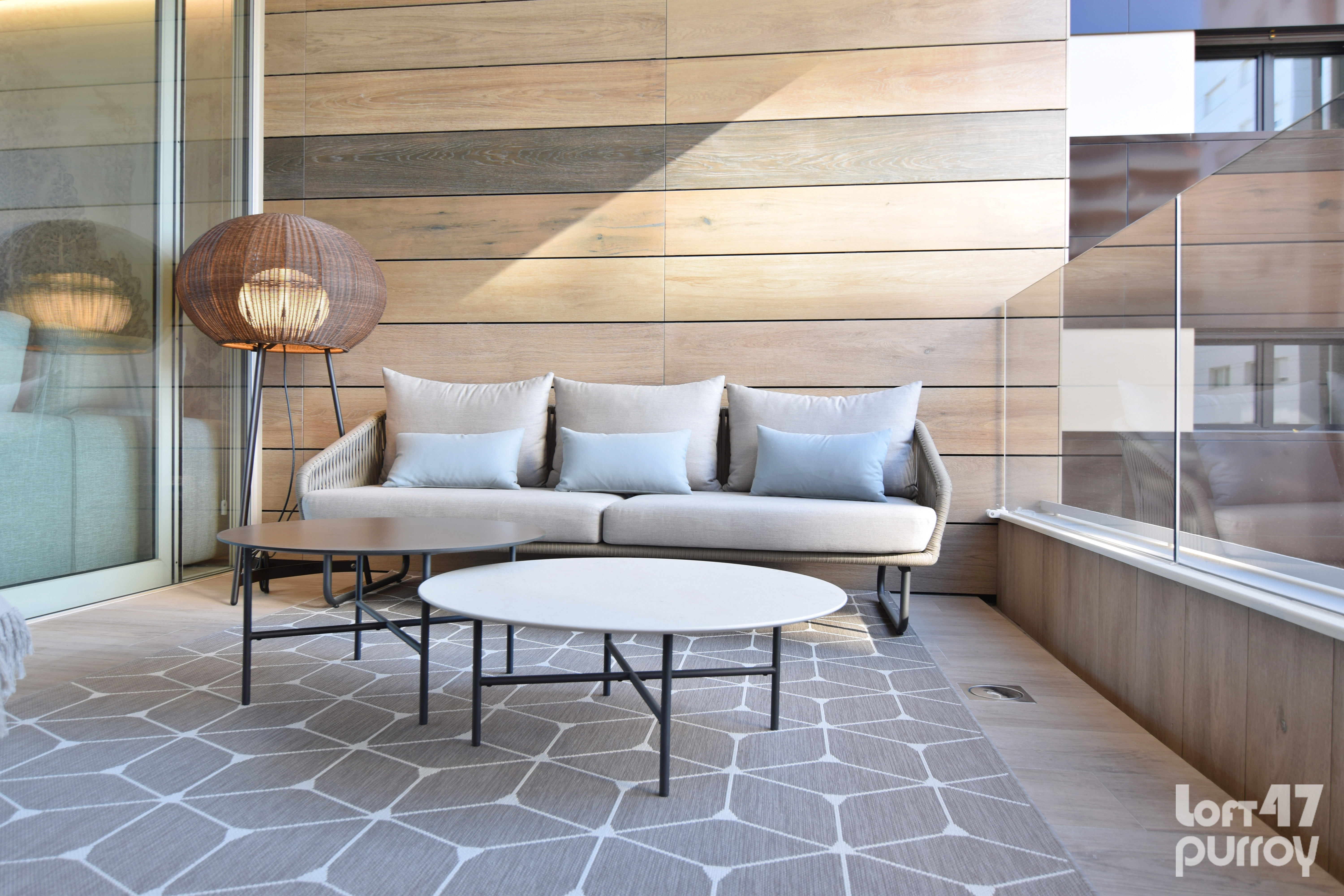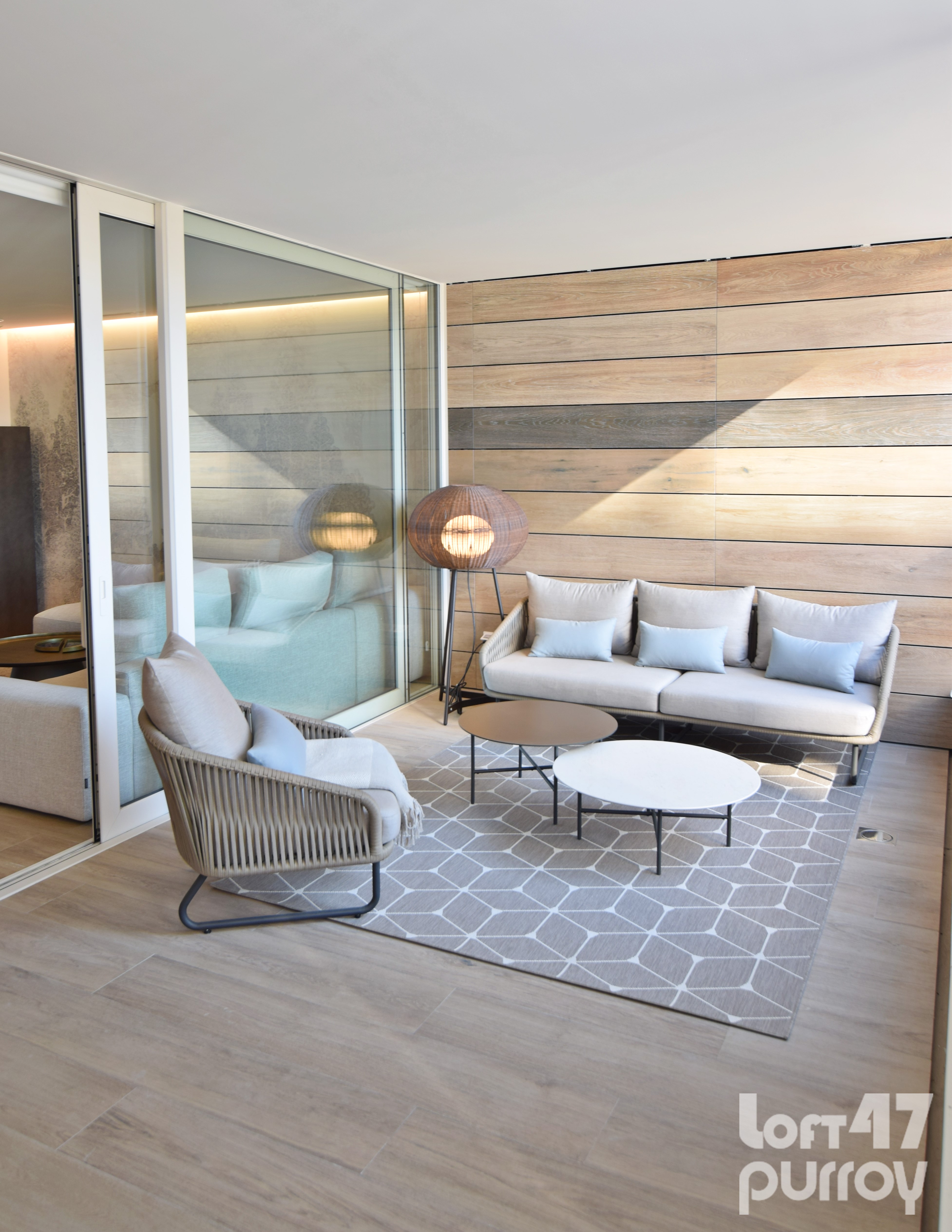 La zona #outdoor de la vivienda es la encargada de conectar la zona día. Una prolongación del #salón para disfrutar durante todo el año.