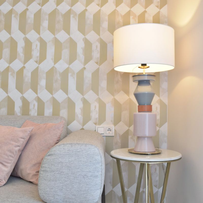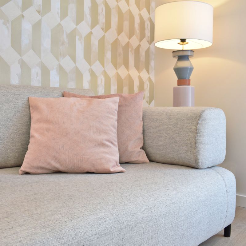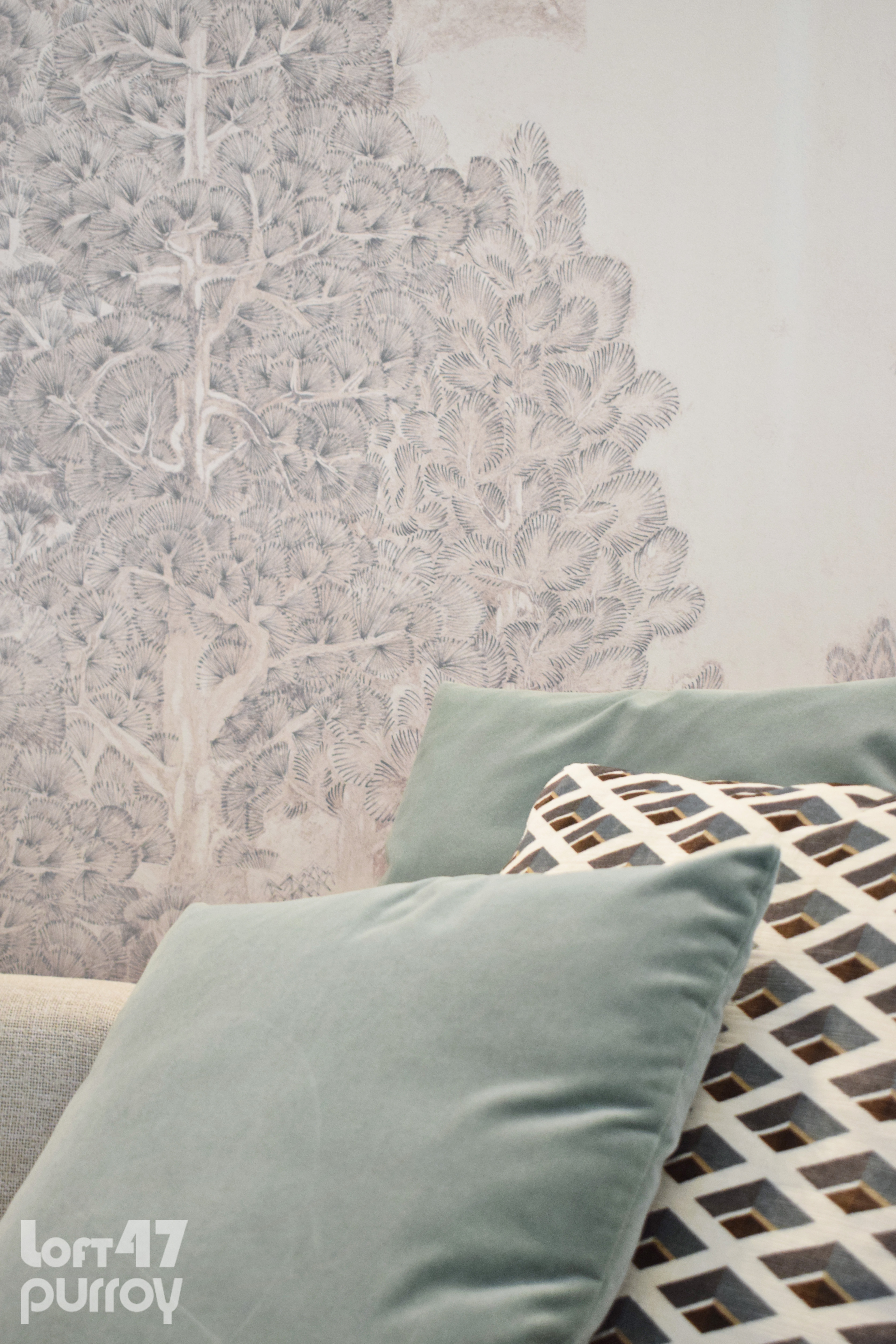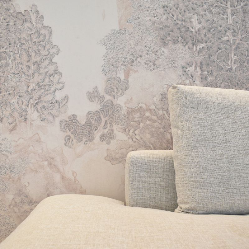 El mural se ha diseñado a medida creando un ambiente calmado y relajado, con una ligera profundidad gracias al degradado de los tonos empleados.